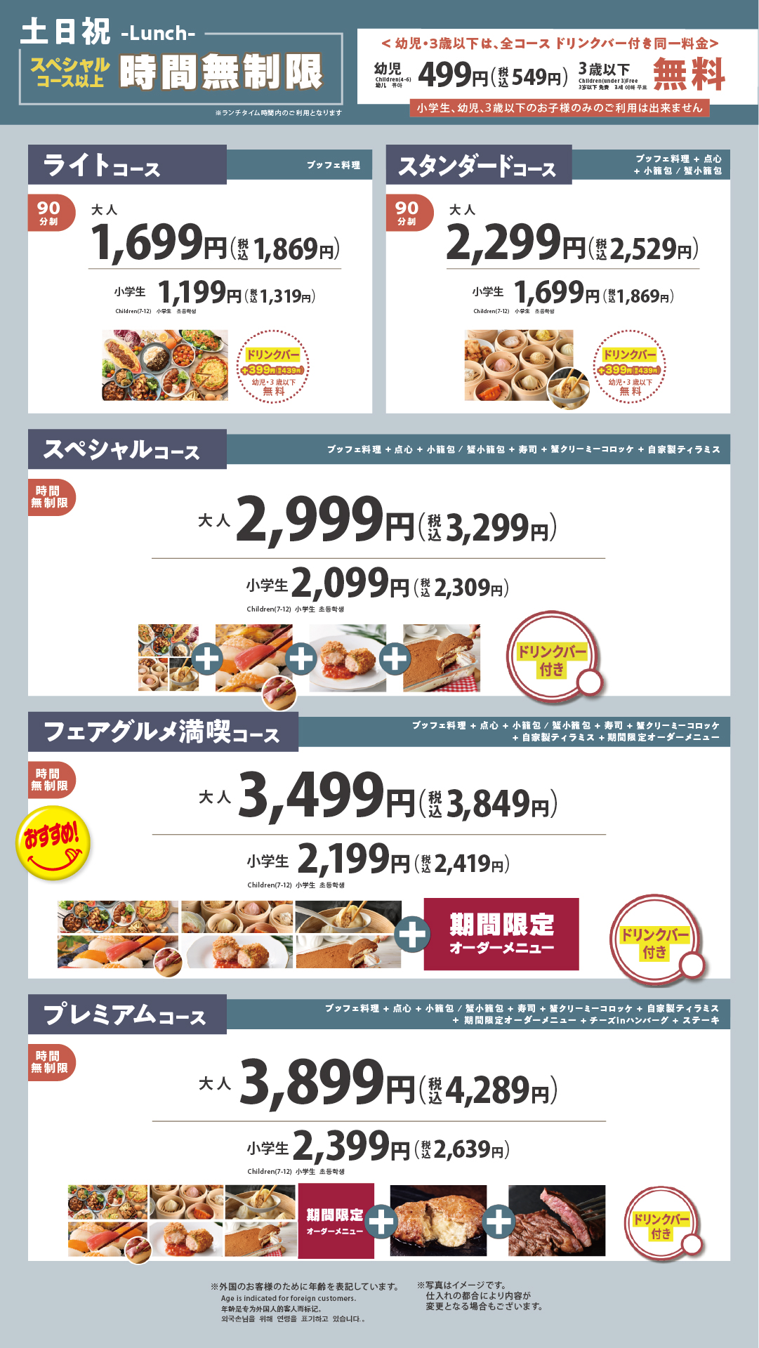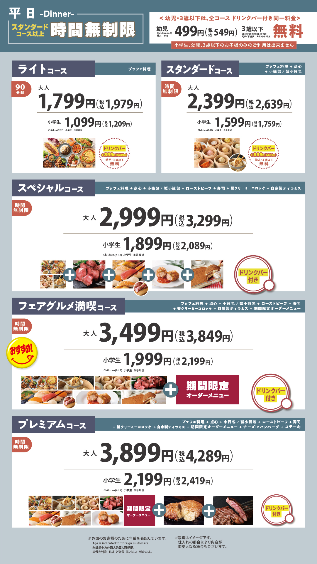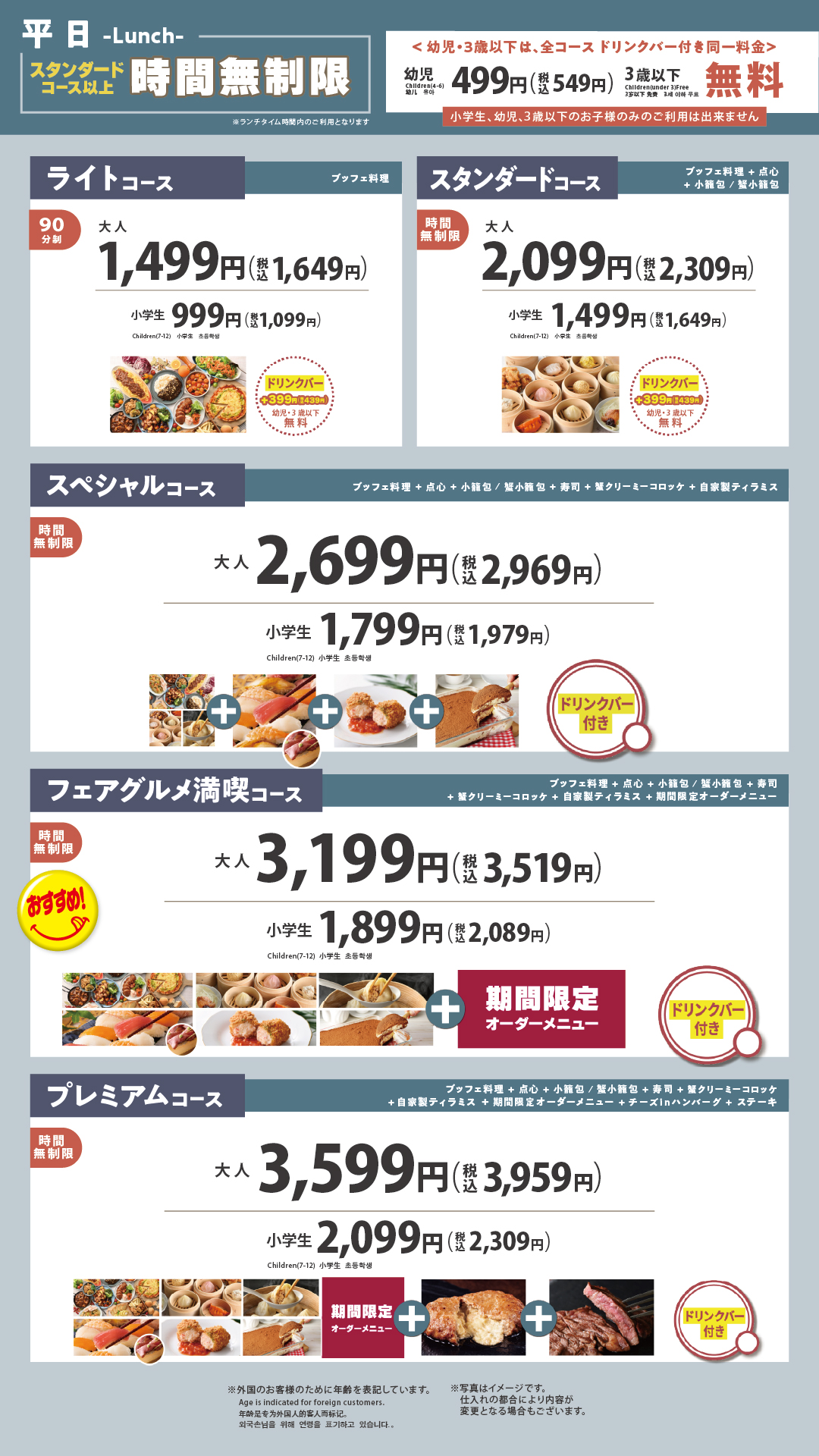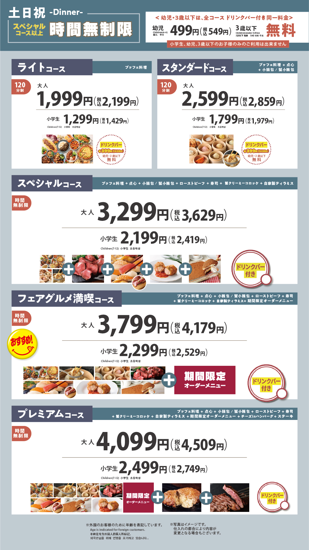 最上位コースなら100品以上が食べ放題‼