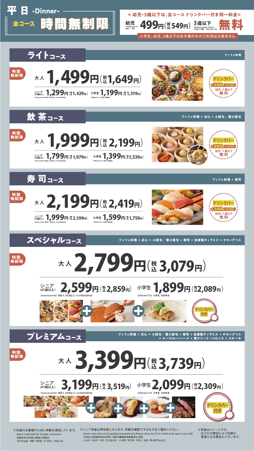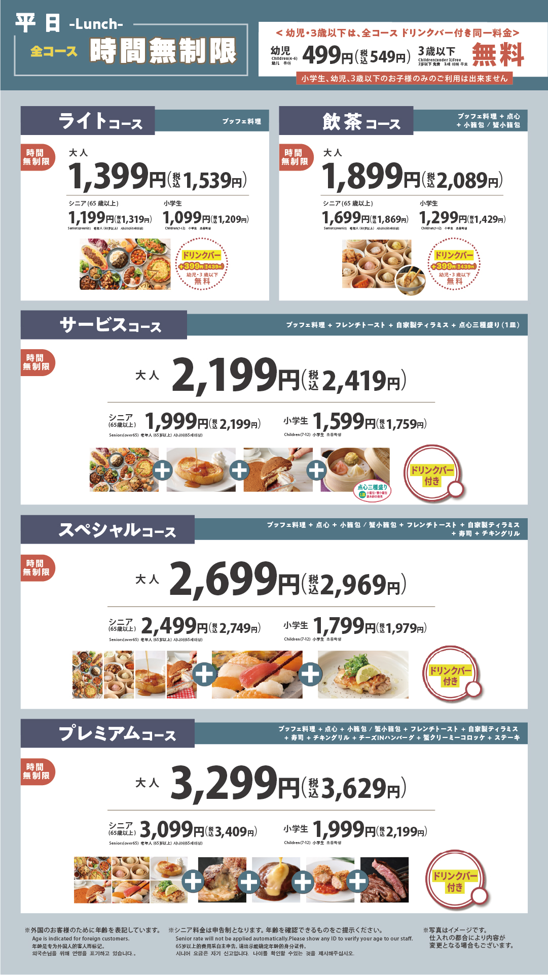 和洋中65品以上が食べ放題でお楽しみいただけます