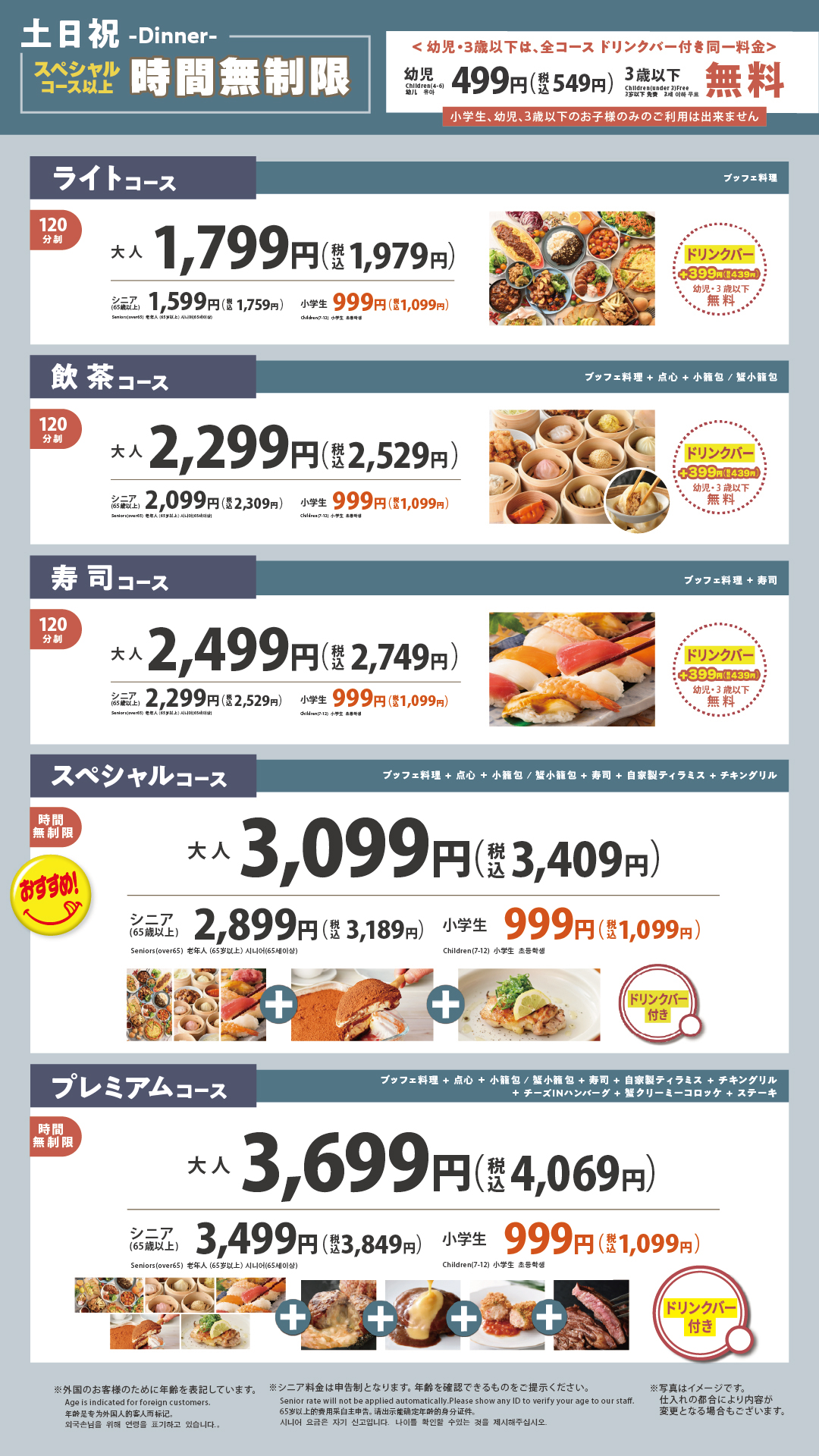 ※ライトコース、飲茶コース、寿司コースは別料金となります