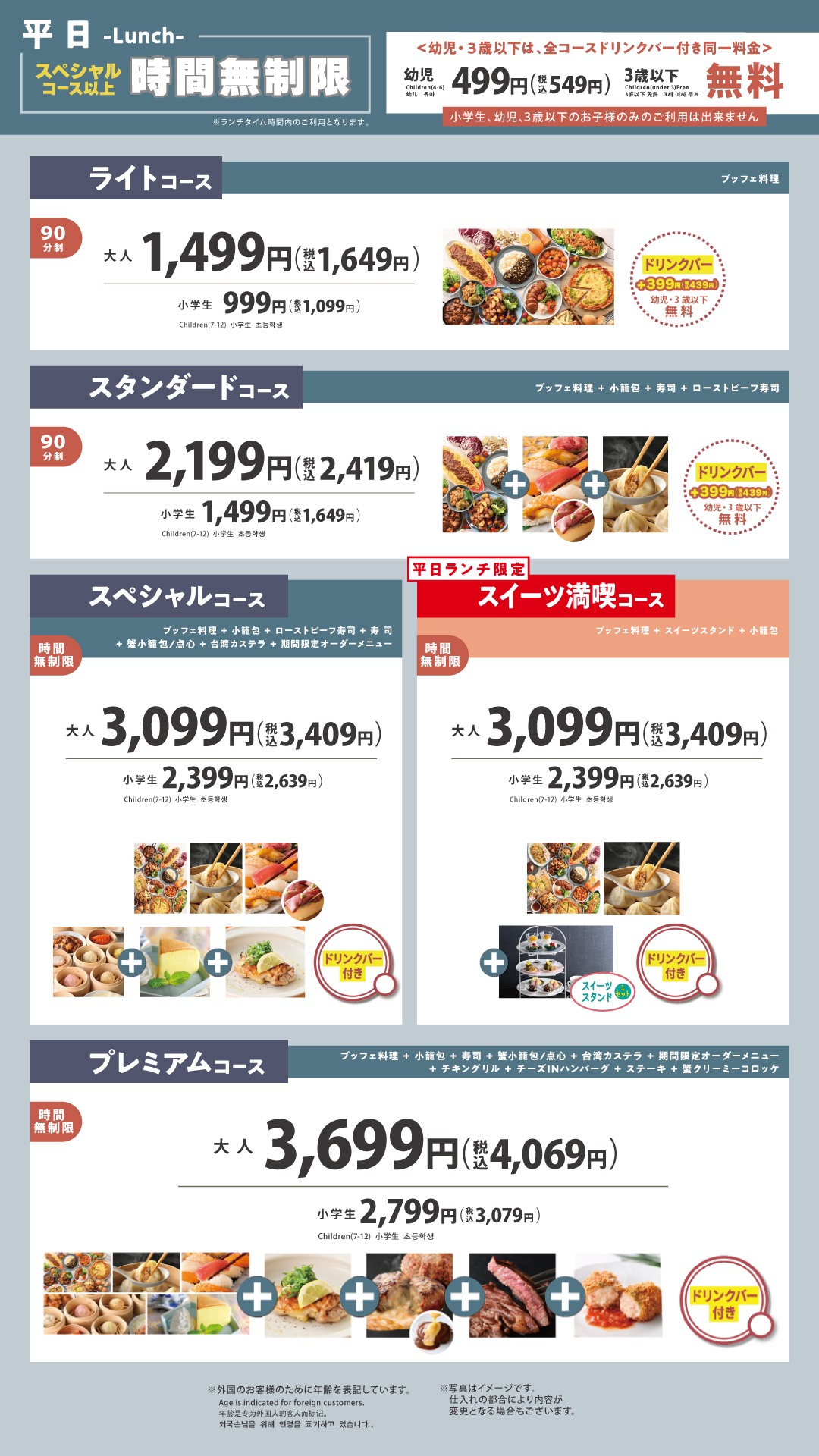 最上位コースなら100品以上が食べ放題‼