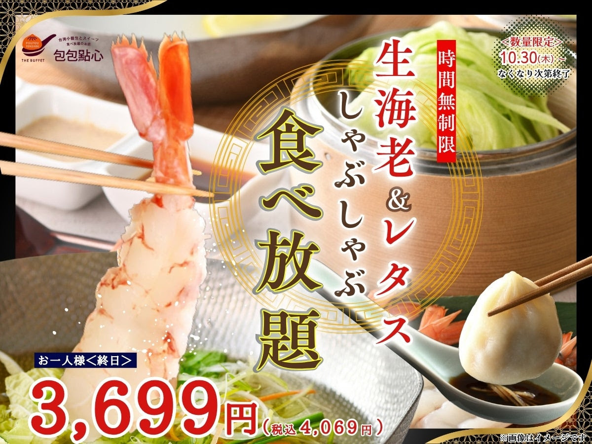 【時間無制限!!飲茶&しゃぶしゃぶ食べ放題!!】台湾小籠包と本格中華の食べ放題『THE BUFFET 包包點心 ららぽーと横浜』にて台湾飲茶と『生海老&レタスしゃぶしゃぶ』が堪能できる特別コースが新登場!