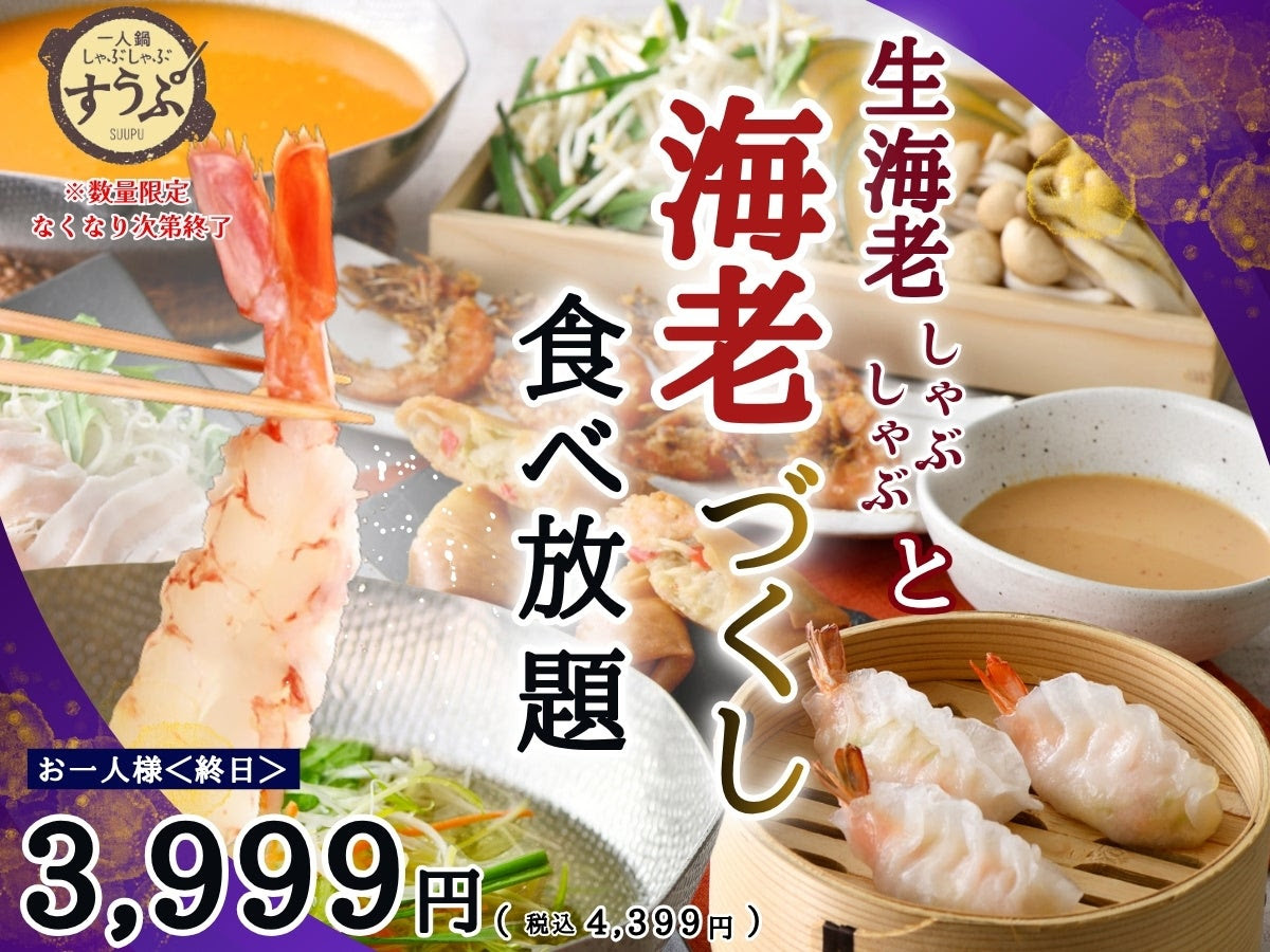 【一人鍋しゃぶしゃぶ すうぷ 静岡パルコ】11/20~生海老しゃぶしゃぶと海老蒸餃子や春巻き、〆は濃厚「ビスクだし」でリゾットも楽しめる!充実の『海老づくし』メニューが堪能できる特別コースが数量限定にて新登場!