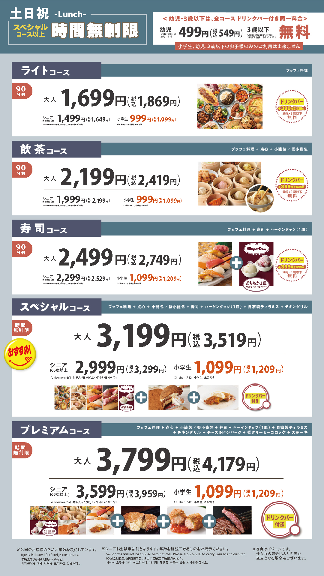 ※ライトコース、飲茶コース、寿司コースは別料金となります