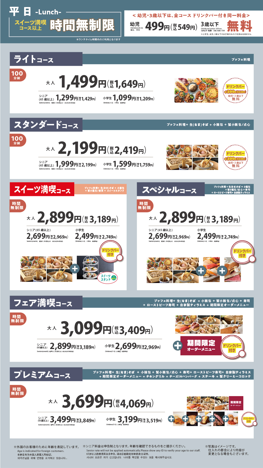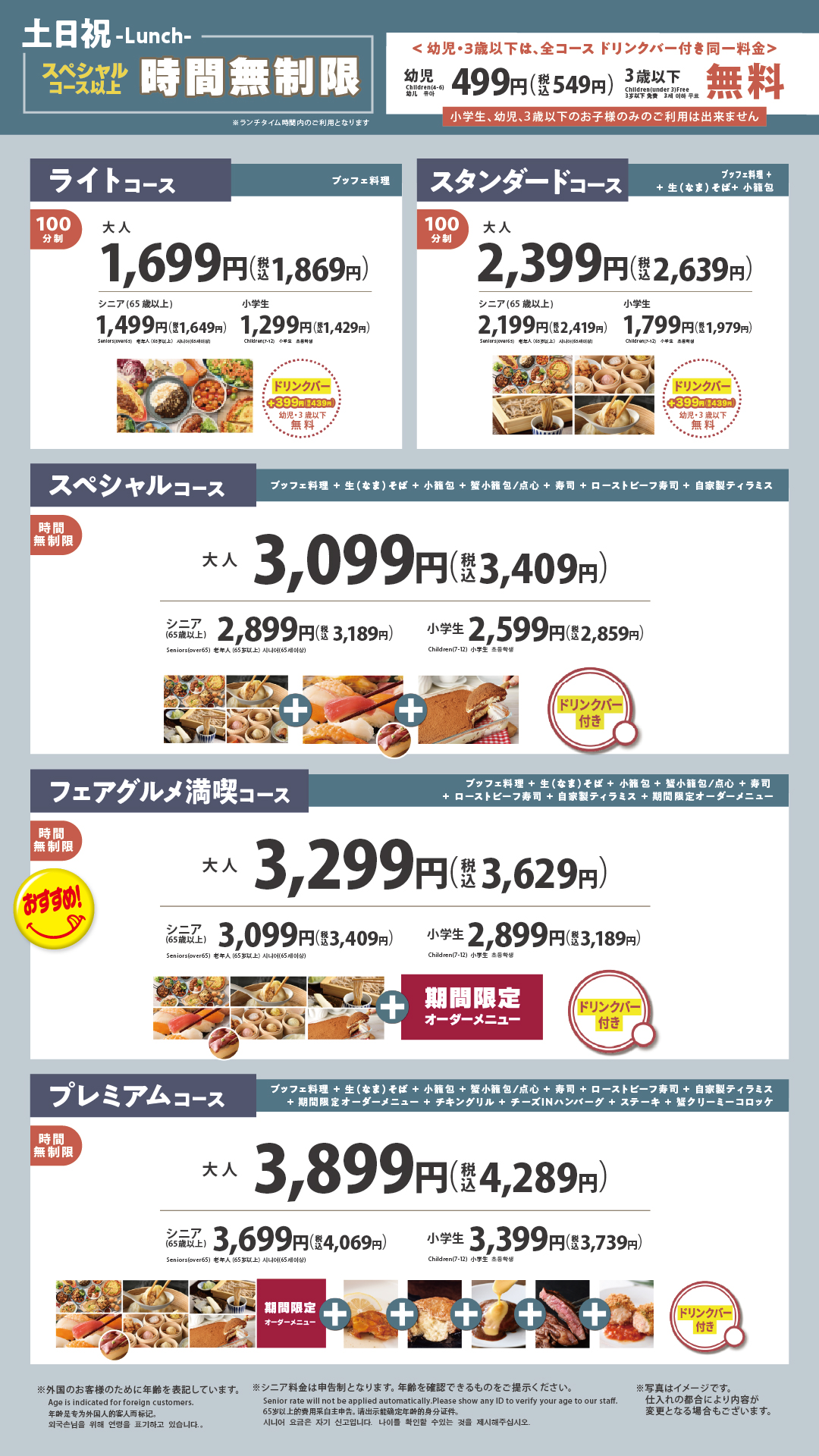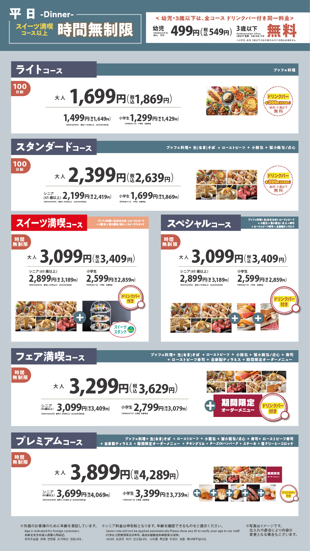 最上位コースなら100品以上が食べ放題‼
