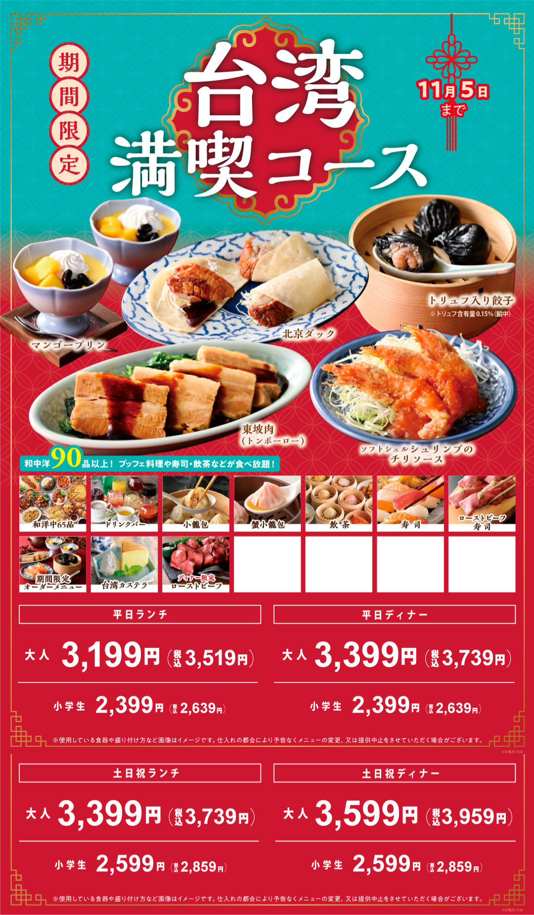 【更に充実!!台湾グルメ食べ放題!!】11/5迄!和洋中の食べ放題『ニラックスブッフェ』で開催中の「台湾グルメフェア」にて「北京ダック」と「トリュフ入り餃子」が期間限定にて新登場!