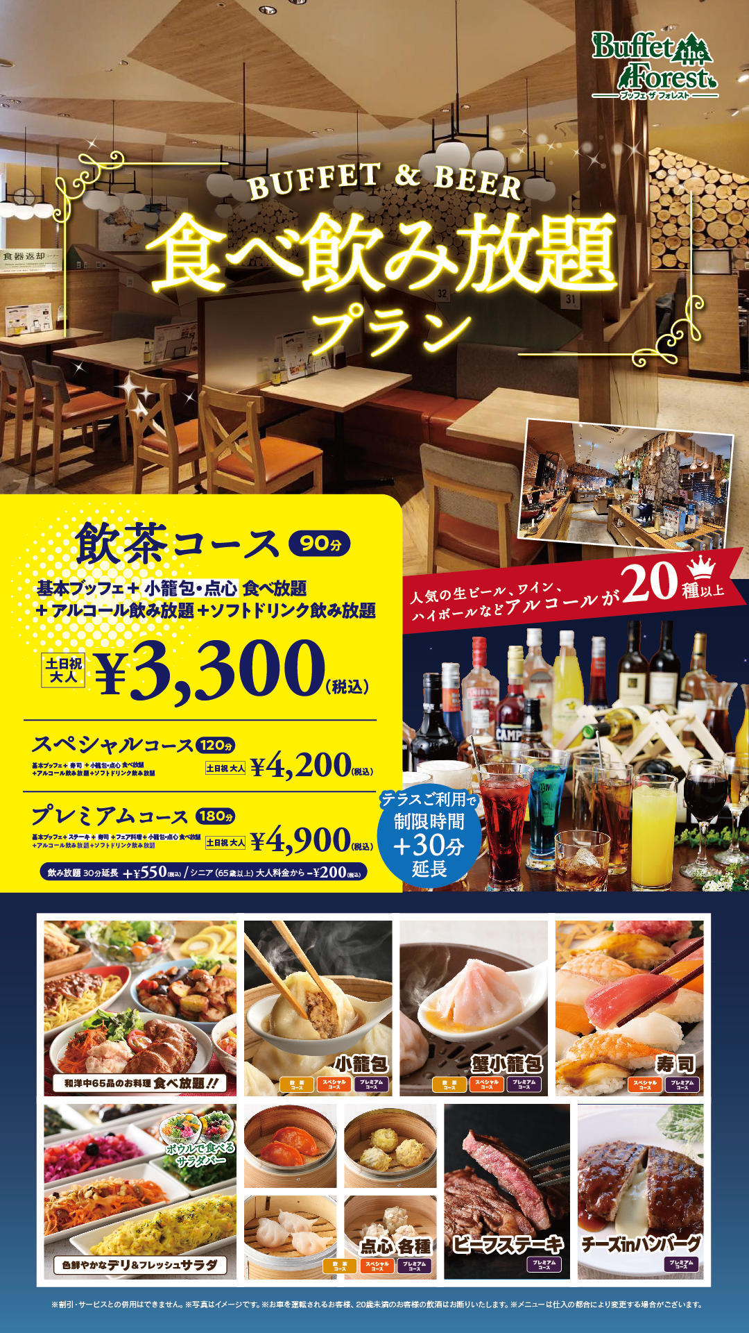【食べ飲み放題♪最強プラン登場!!】バラエティー豊かな食べ放題!ブッフェ ザ フォレスト 南町田グランベリーパークにて「にぎり寿司・小籠包」が楽しめる飲み放題付きコースが登場!120分制で3,700円!