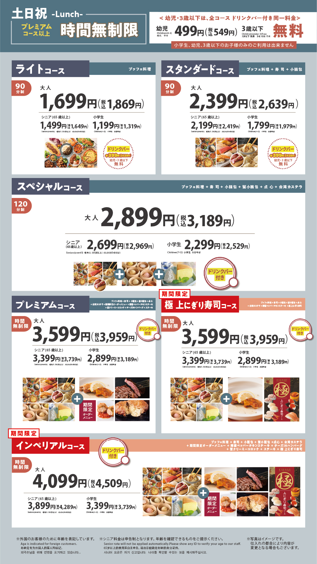 最上位コースなら100品以上が食べ放題‼