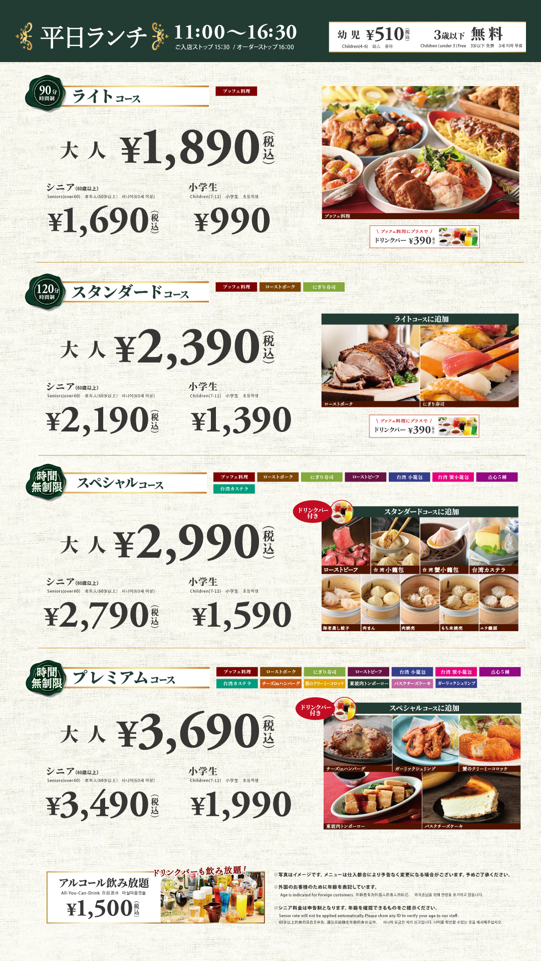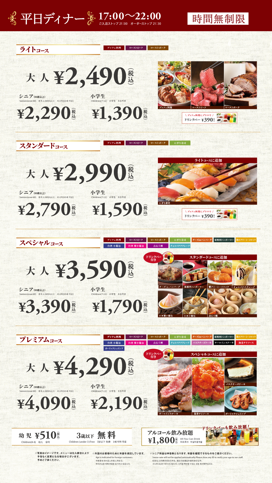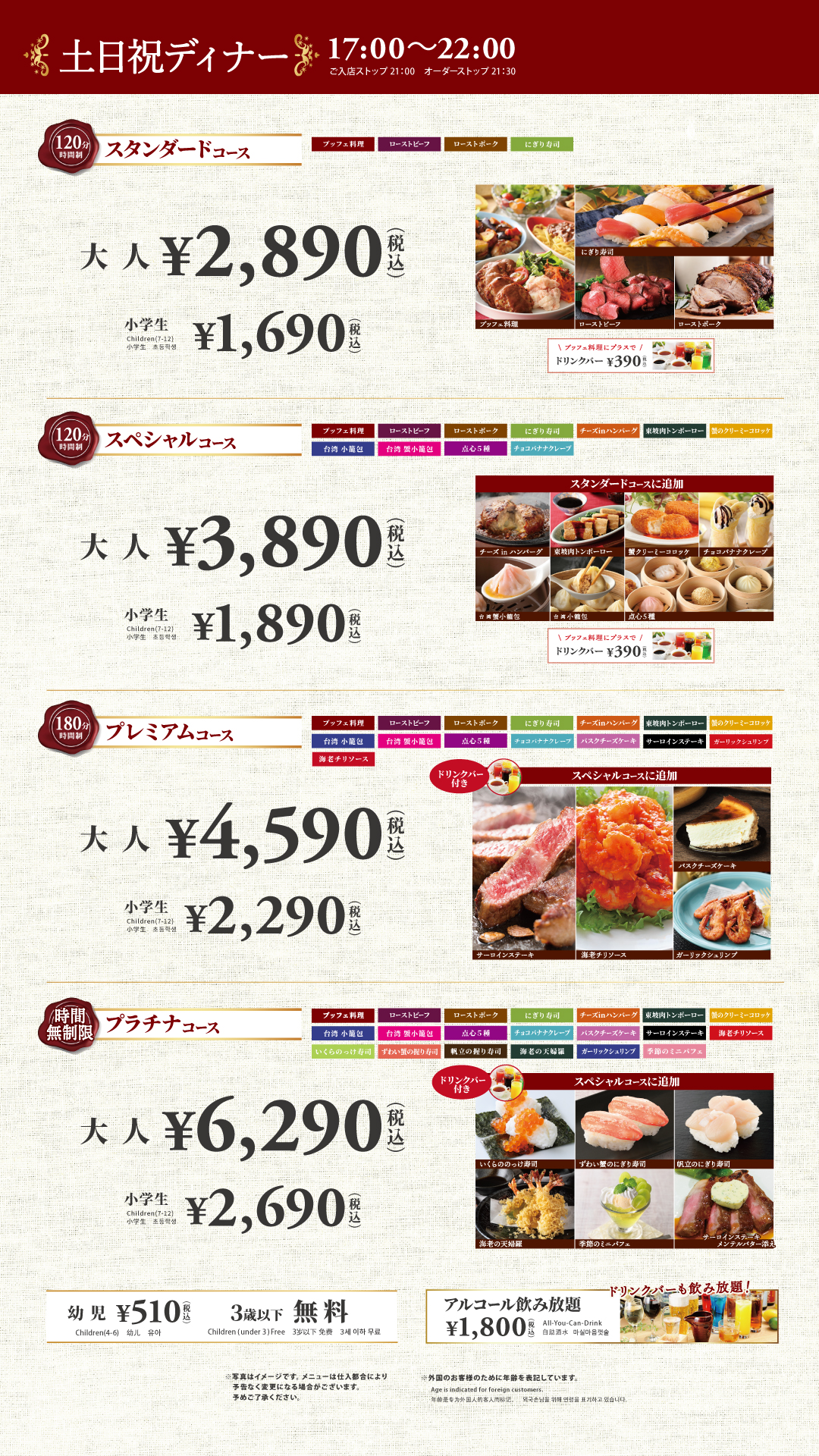 全日 : スペシャル / プレミアム / プラチナ コース限定