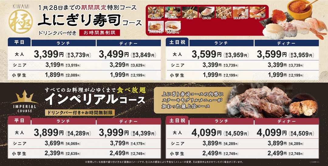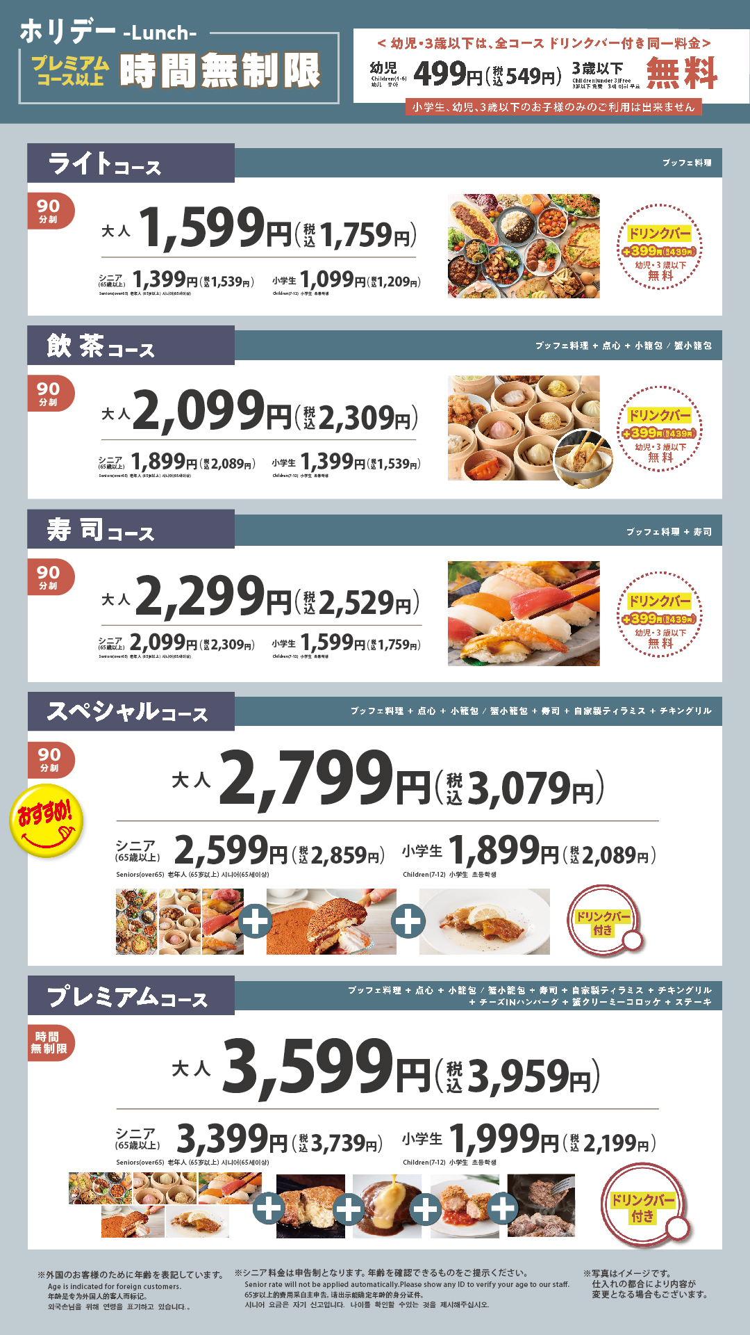 ※ライトコース、飲茶コース、寿司コースは別料金となります