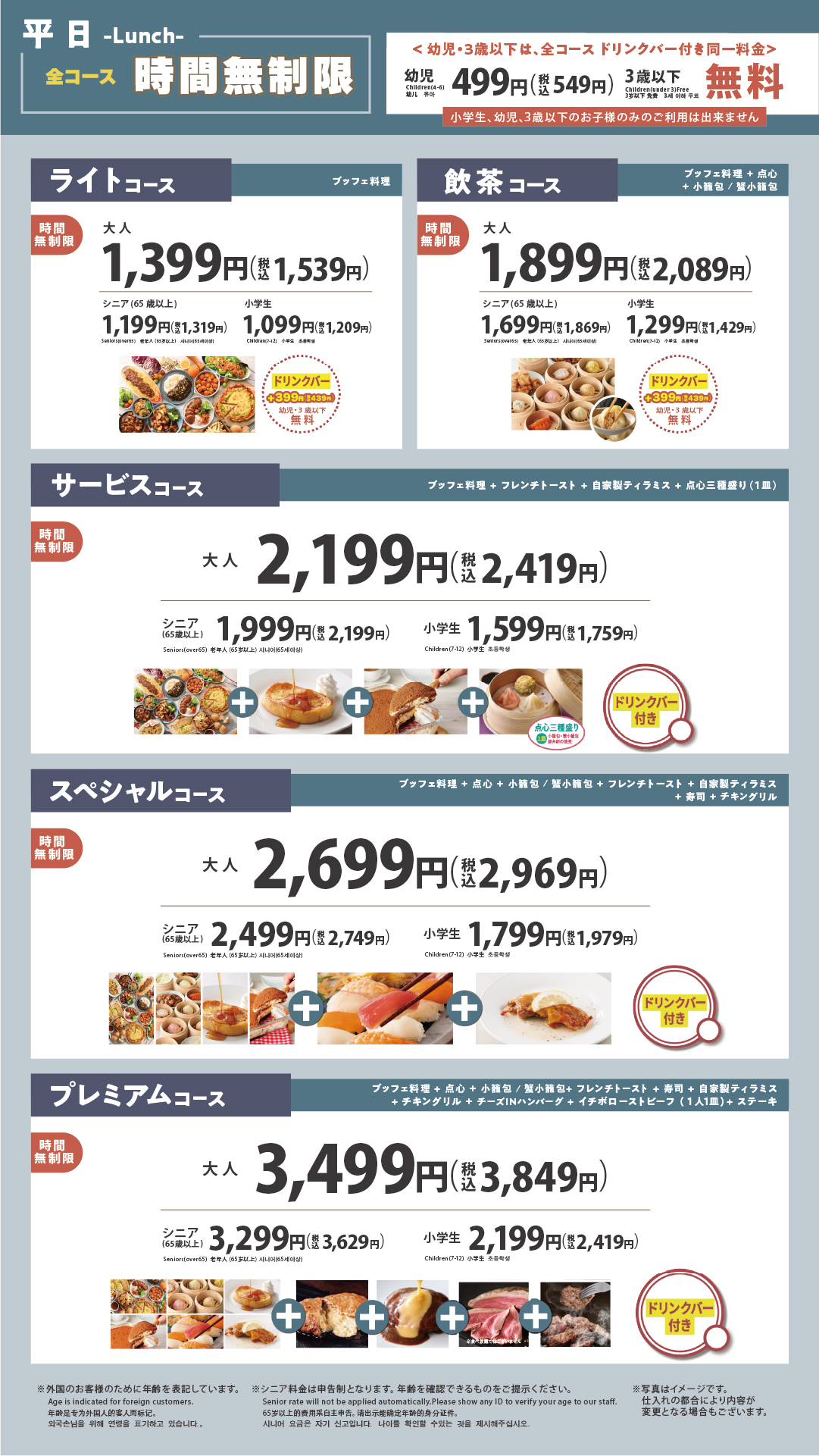 和洋中65品以上が食べ放題でお楽しみいただけます