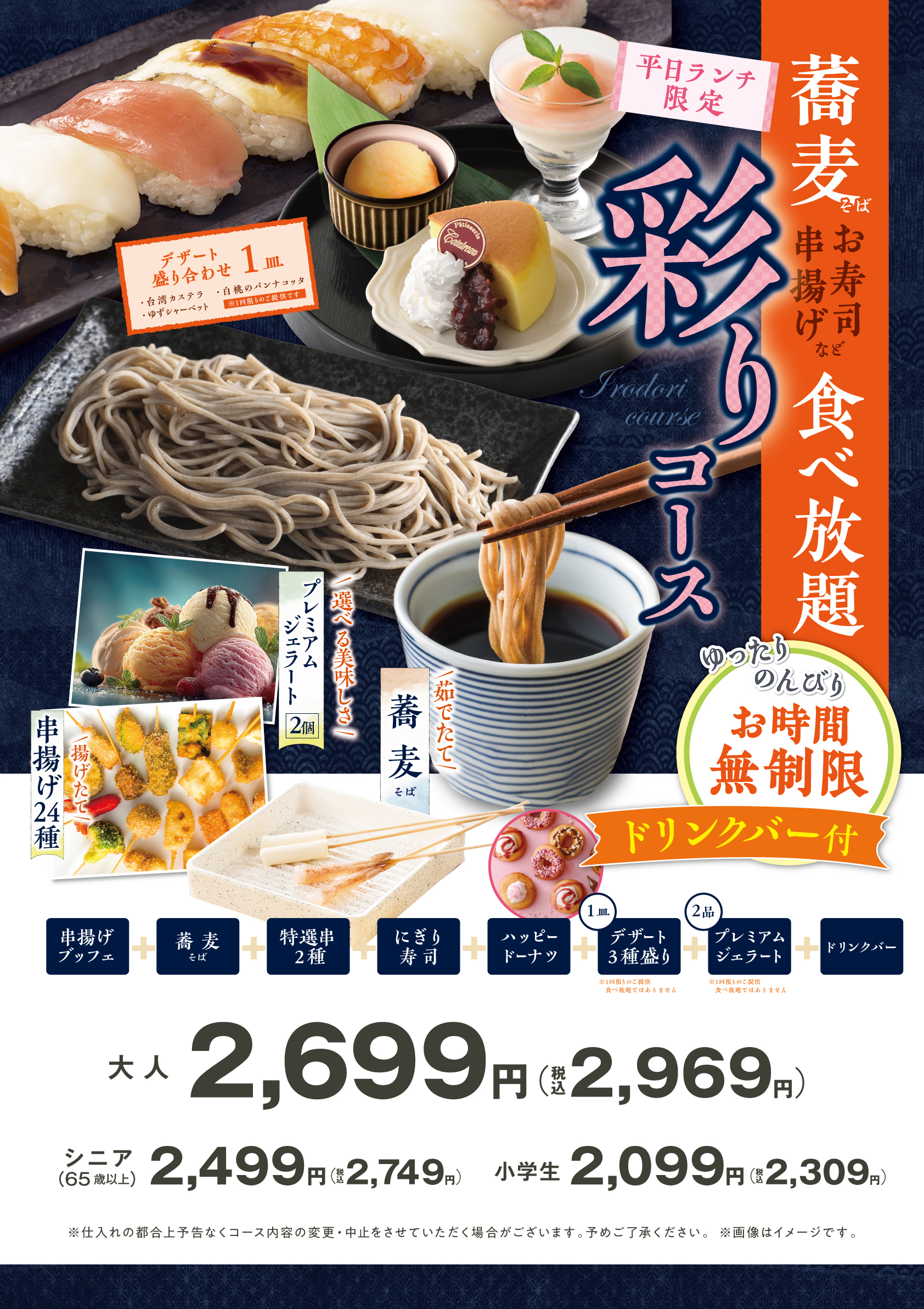 〈 寿司コース / 彩り蕎麦コース:3種 〉