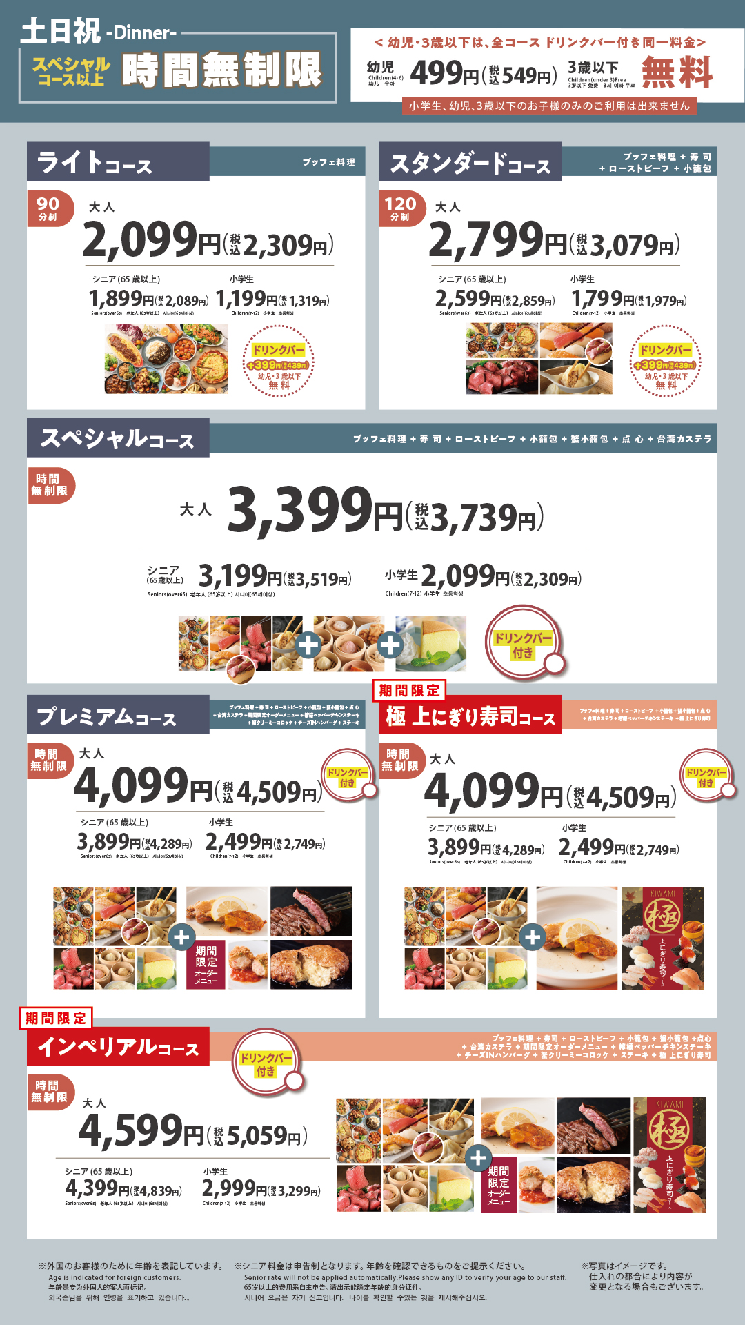 【肉!!寿司!!時間無制限で贅沢三昧♪11/13〜12/3迄!充実の食べ放題「ニラックスブッフェ」にて『生帆立』などの上にぎり寿司に加え『ビーフステーキ』などのグリルも堪能できる特別コースが期間限定にて新登場!