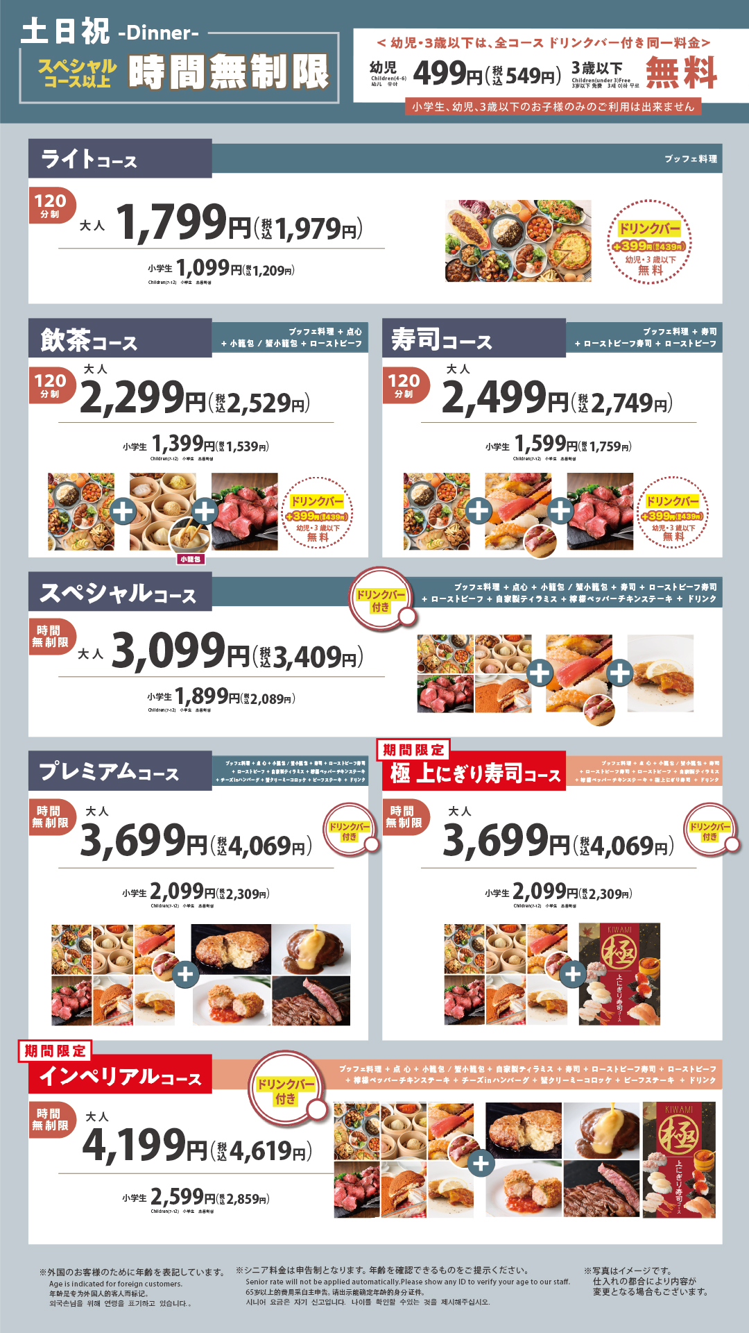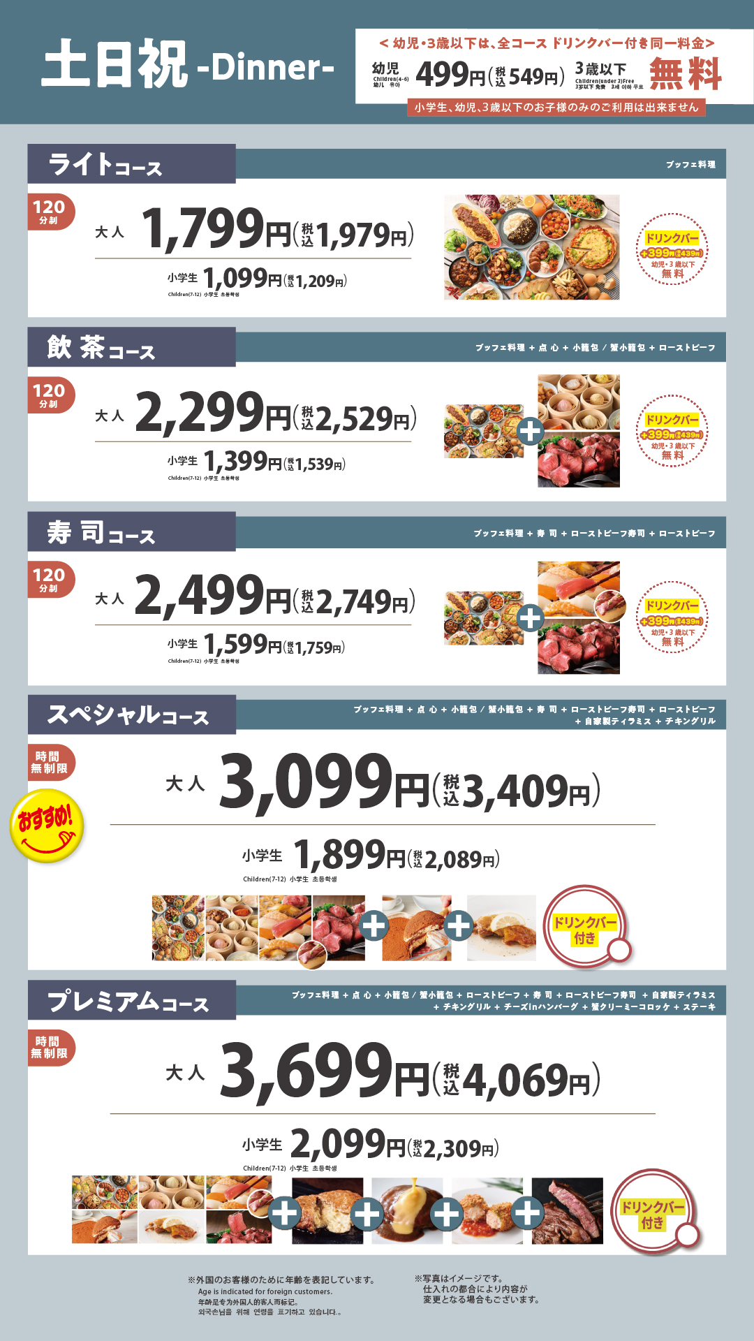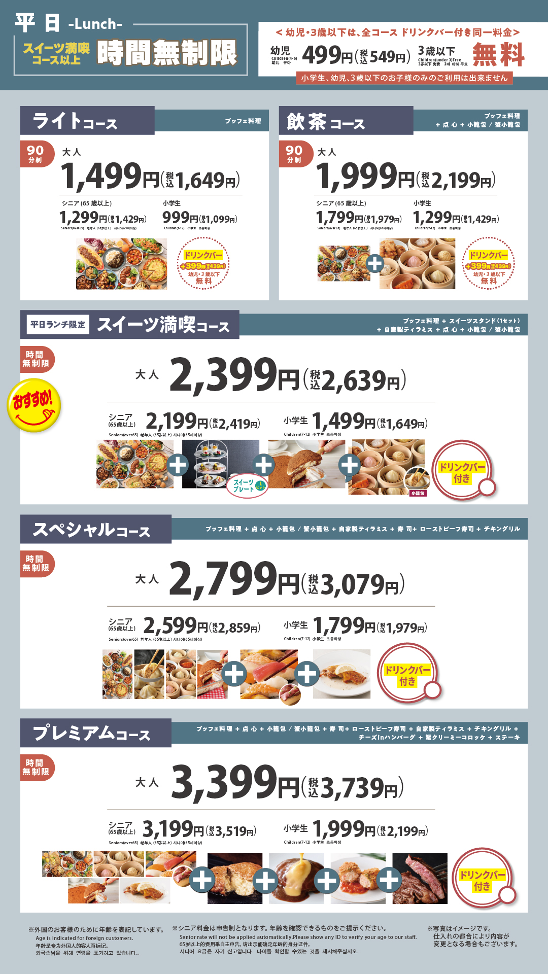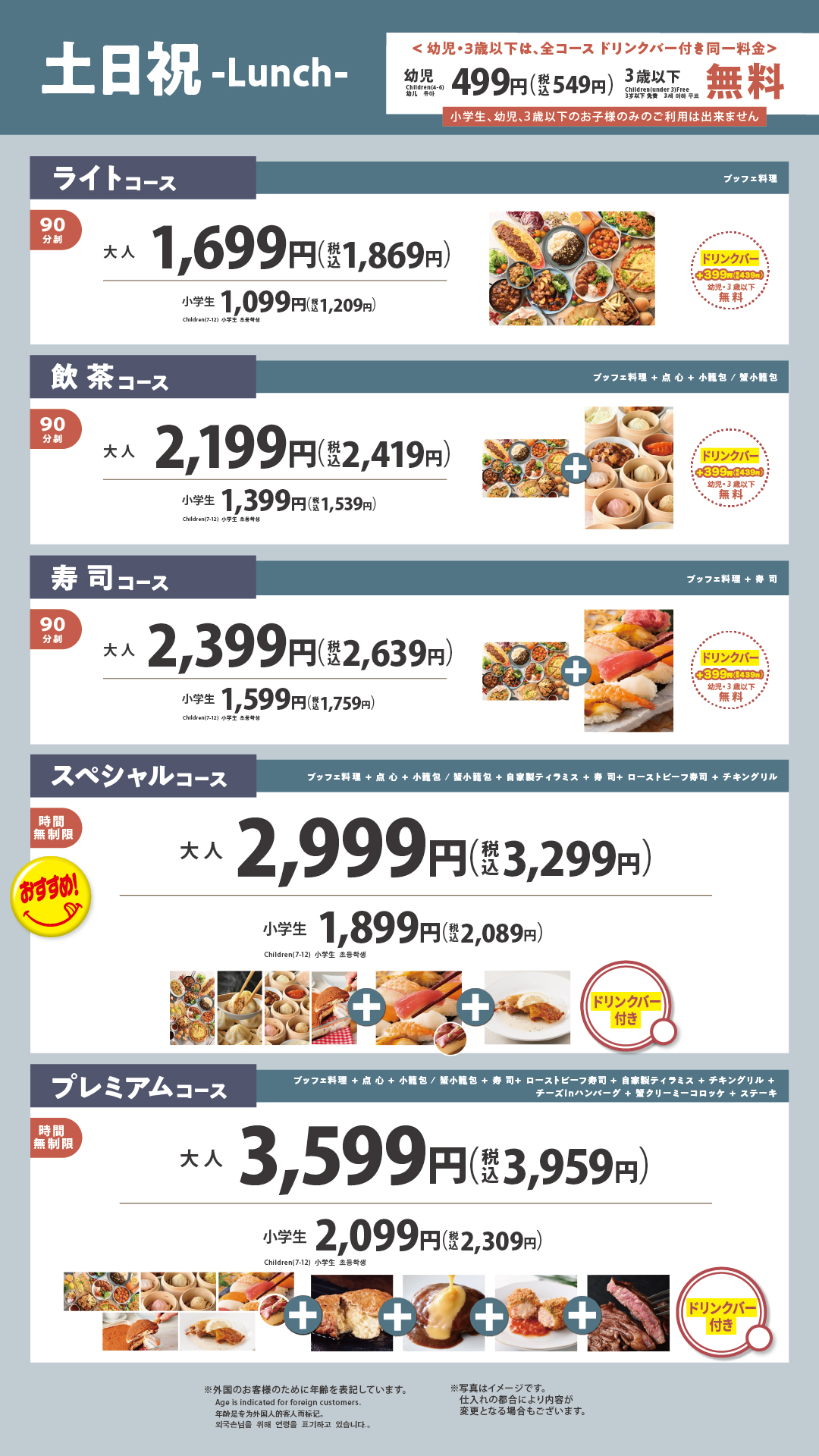 ※ライトコース、飲茶コース、寿司コースは別料金となります