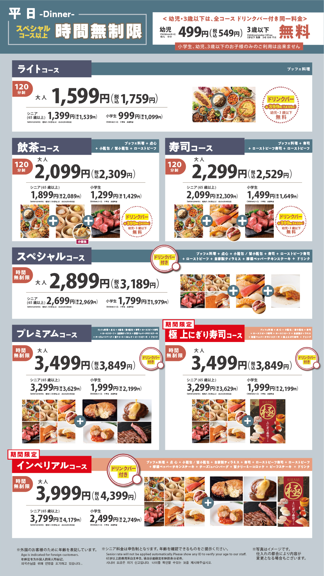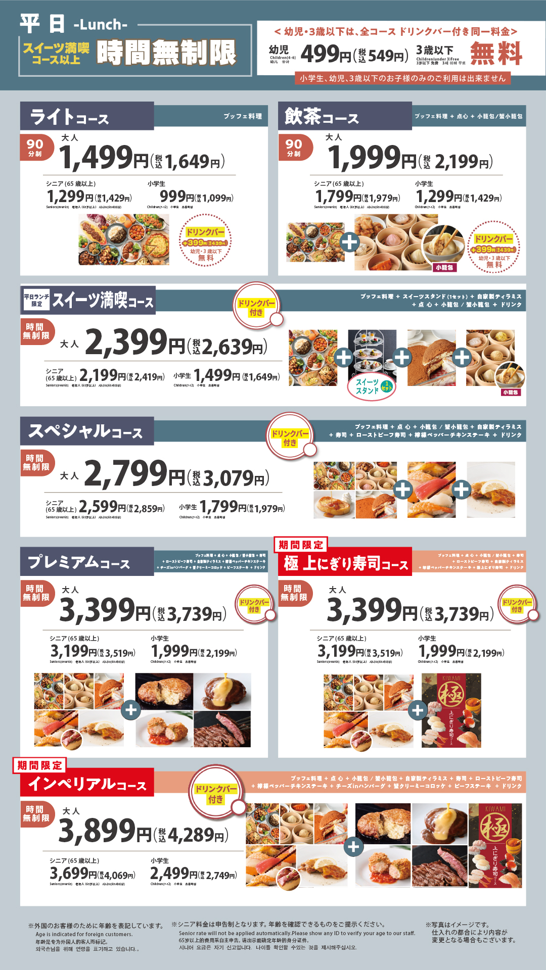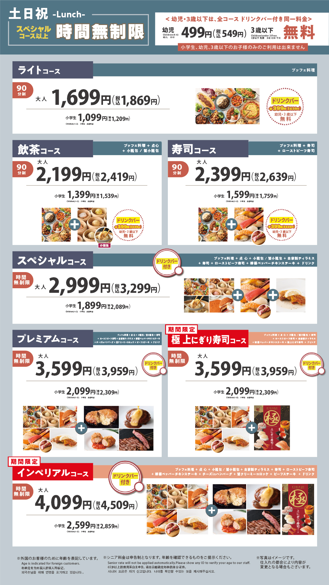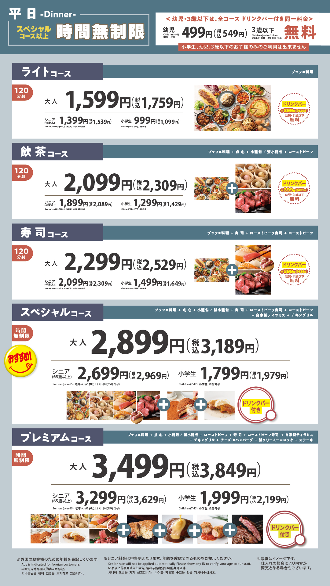 ※ライトコース、飲茶コース、寿司コースは別料金となります