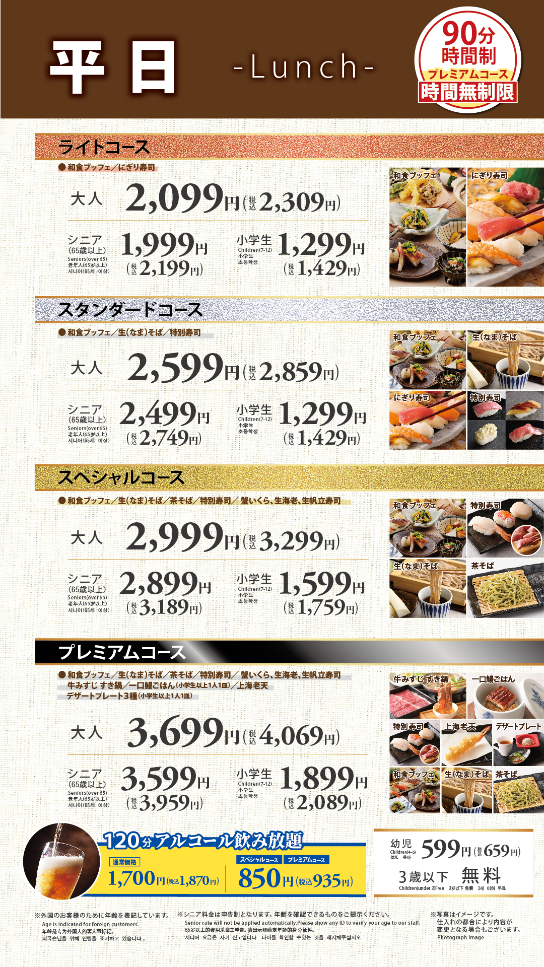 スタンダード / デザートプレート / スペシャル / プレミアム コース限定