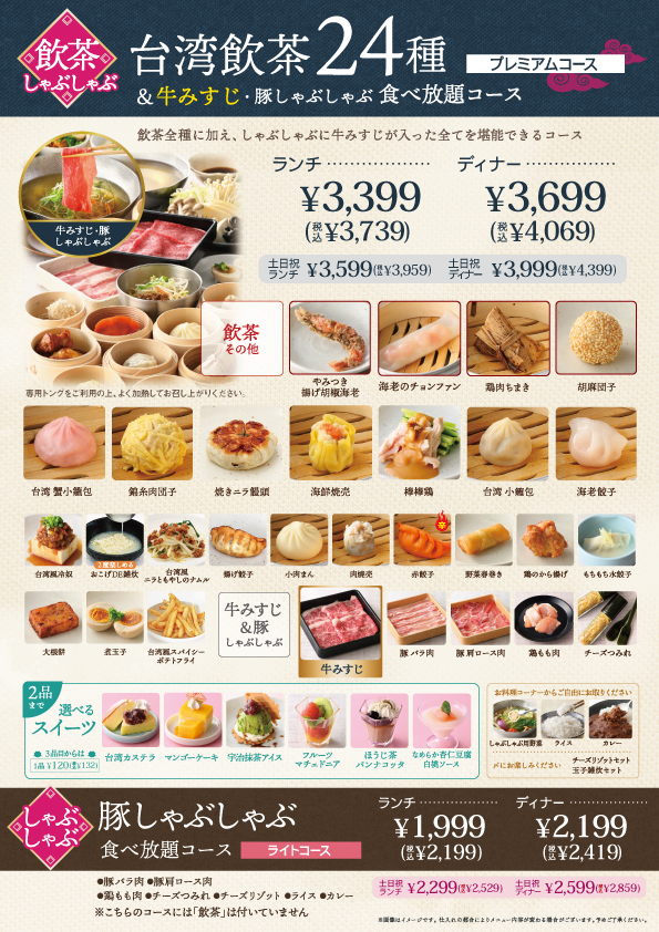 飲茶24種&牛みすじ・豚しゃぶしゃぶ&more(プレミアムコース)