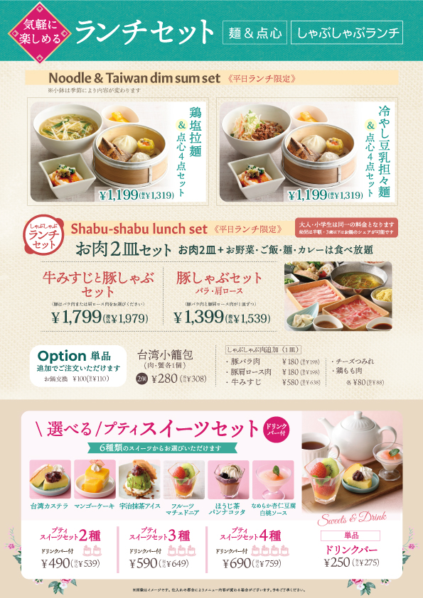 豚しゃぶ飲茶を気軽に楽しめるコース(ライトコース・平日ランチ限定コース)