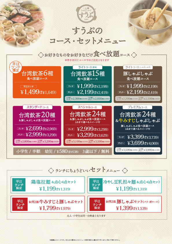 飲茶20種&豚しゃぶしゃぶ&more(スタンダードコース)