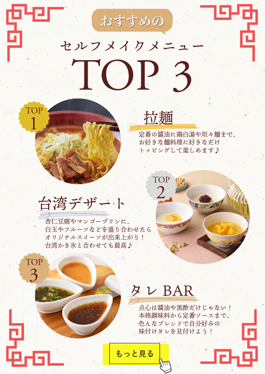 杏仁豆腐 や 台湾かき氷 などのデザートも充実